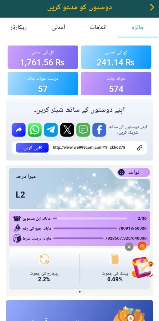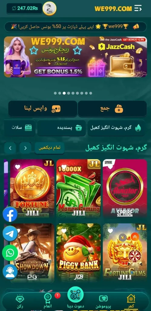 The WE 999 is becoming one of the most searched casino earning apps in Pakistan, especially among users who love playing online games and making small daily earnings. Its smooth design, fast deposits, and quick withdrawals make it a trusted option for gamers who want secure, risk-free entertainment.