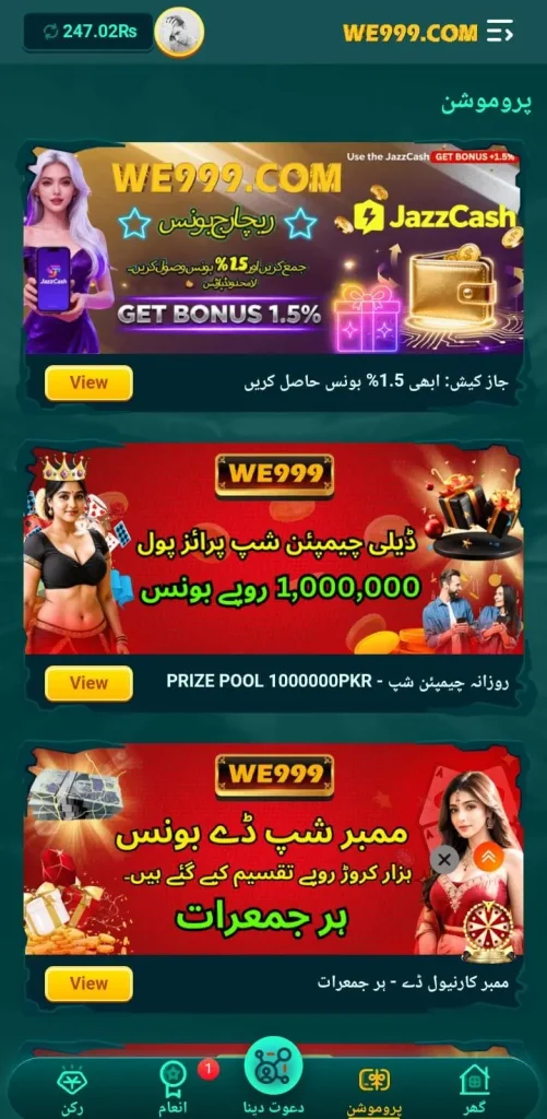 The WE 999 Game is one of the best real cash earning apps in Pakistan for 2025. With secure withdrawals, multiple mini-games, high bonuses, and smooth performance, it provides a reliable and enjoyable gaming experience. Whether you’re playing for fun or for small earnings, WE 999 is a strong choice thanks to its trusted features and user-friendly design.
